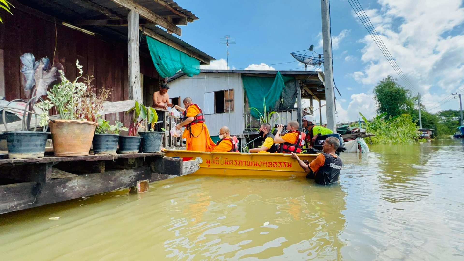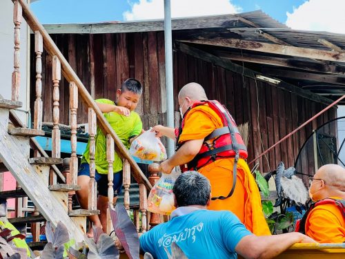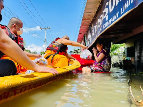 ด้านพระสุธรรมมุนี รักษาการเจ้าอาวาสวัดพระศรีรัตนมหาธาตุ วรมหาวิหาร หรือวัดใหญ่ ได้มอบหมายให้พระภิกษุสงฆ์ สามเณร พร้อมด้วยเจ้าหน้าที่ กอ.รมน.พิษณุโลก นำสิ่งของอุปโภคบริโภค ยารักษาโรค น้ำดื่มที่สะอาด จำนวนกว่า 200 ชุด ไปมอบให้กับชาวบ้านชุมชนโรงเลื่อยบางระกำ ชุมชนบ้านคลองปากลาย ที่ถูกน้ำท่วมจากแม่น้ำยมล้นตลิ่ง มาร่วมเกือบ 1 เดือน เพื่อเป็นการช่วยเหลือเป็นการเบื้องต้น โดยมีเจาหน้าที่กู้ภัยมิตรภาพมงคลธรรม มาคอยดูแลให้ความสะดวก และความปลอดภัย