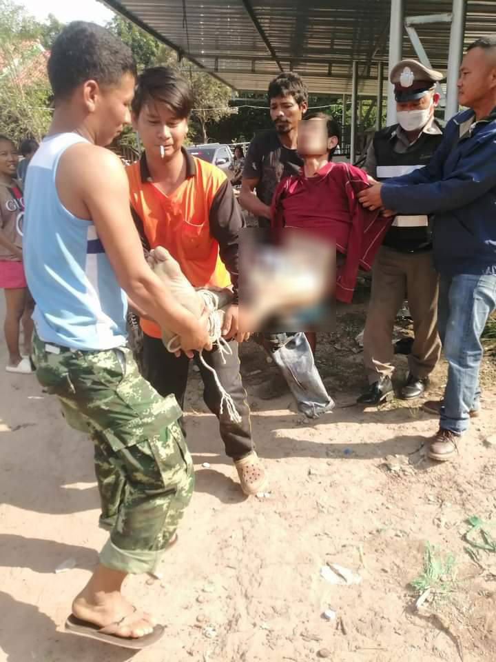 หลังจากนั้นนายณัฐพงษ์ ผู้ต้องหา จึงหลบหนีและมาเจอชาวบ้านกำลังขี่รถจักรยานยนต์แล้วใช้อาวุธมีดจี้บังคับเอารถไป แล้วขี่ไปในโรงงานรับซื้อยางพาราอีกแห่ง ก่อนจะข่มขู่คนงาน 4 คน และมีอาการคลุ้มคลั่งปีนขึ้นไปบนหลังคา ก่อนจะถูกชาวบ้านรุมจับกุมตัวเอาไว้ได้ส่งดำเนินคดีในที่สุด เบื้องต้นในวันนี้ตำรวจได้สอบปากคำเพิ่มเติมและแจ้งข้อหาฆ่าคนตาย ก่อนจะนำไปตรวจหาสารเสพติดในร่างกายแต่ไม่พบ พบเพียงสารเสพติดจากกัญชาเท่านั้น นอกจากนี้ผู้ต้องหาเคยมีประวัติถูกจับคดียาเสพติดอีกด้วย