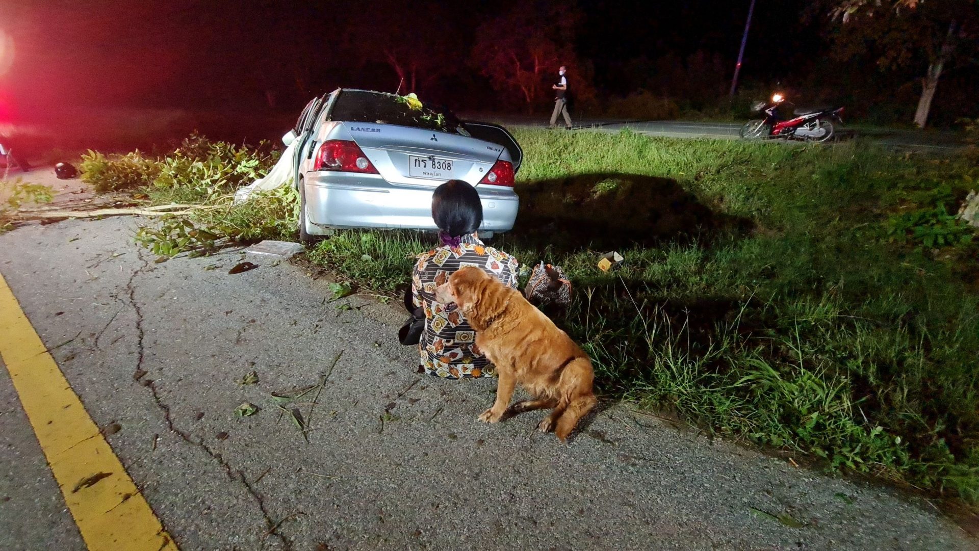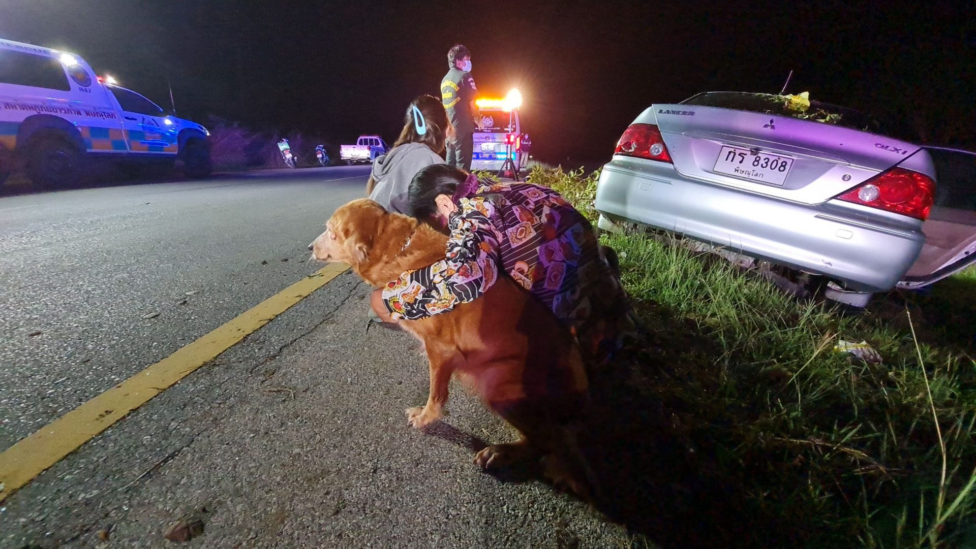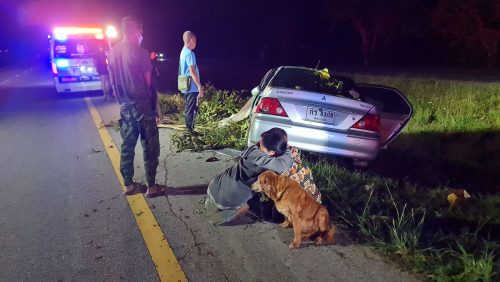 ด้าน นายไมตรี ตรีฉันทกุล รองหัวหน้ากู้ภัย สมาคมกู้ภัยข่าวภาพ เปิดเผยว่า หลังจากได้รับแจ้งจากศูนย์วิทยุตำรวจ 191 จึงนำกำลังเจ้าหน้าที่กู้ภัยเข้าตรวจสอบทันที ตรวจสอบภายในห้องโดยสารขณะนั้นคนขับเสียชีวิตในที่เกิดเหตุแล้ว แต่มีสุนัขเพศเมียที่นั่งมาด้วยอยู่ข้างๆ กายของผู้เสียชีวิตตลอดเวลา ลักษณะหวงเจ้าของเป็นอย่างมากไม่ยอมให้ใครเข้าใกล้ เจ้าหน้าที่จึงต้องระมัดระวังช่วยกันนำสุนัขออกมาด้านนอกรถและรอเจ้าหน้าที่ตำรวจพร้อมแพทย์เวรเข้าตรวจสอบอย่างละเอียดอีกครั้งหนึ่ง