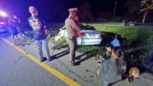 จากการสอบถาม นางเพียงใจ เพื่อนฝูง อายุ 52 ปี ภรรยาผู้เสียชีวิต ได้เดินทางมาดูจุดเกิดเหตุถึงกับเข่าอ่อนเป็นลมร้องไห้ด้วยความโศกเศร้าเสียใจ และสวมกอดสุนัขที่นั่งมาด้วยกับสามี เปิดเผยว่า ก่อนหน้านี้สามีกำลังจะไปหาเพื่อนภายในค่ายทหาร และพาเจ้าจู๋สุนัขเพศเมียที่เลี้ยงไว้และรักเป็นอย่างมากนั่งไปด้วย แต่ตนรู้สึกสังหรณ์ใจเพราะว่าปกติสามีจะไม่พาเจ้าจู๋ไปไหนมาไหนด้วย แต่จะเลี้ยงไว้กับสุนัขที่บ้านอีก 4 ตัว จึงขี่รถจักรยานยนต์ตามออกมาห่างกันประมาณ 20 นาที เมื่อมาถึงจุดเกิดเหตุพบว่ามีเจ้าหน้าที่กู้ภัยกำลังปฏิบัติหน้าที่อยู่และมีอุบัติเหตุเกิดขึ้น เมื่อเห็นภาพตรงหน้าก็ต้องตกใจเป็นอย่างมาก เพราะว่าเป็นรถเก๋งของสามีตนเองเสียหลักพุ่งชนต้นไม้ข้างทางเข้าอย่างจัง ทำให้เสียชีวิตทันทีในที่เกิดเหตุ ส่วนเจ้าจู๋สุนัขที่นั่งมาเบาะด้านหลังได้รับบาดเจ็บที่ขาเล็กน้อย และคอยเฝ้ามองดูร่างของสามีตนที่ยังอยู่ภายในรถ พร้อมกับส่งเสียงเห่าครวญครางด้วยอาการเซื่องซึมอย่างเห็นได้ชัด ตนเสียใจมากได้แต่สวมกอดเจ้าจู๋สุนัขแสนรักของสามีอาลัยเป็นครั้งสุดท้าย เป็นภาพที่น่าเวทนาสงสารเป็นอย่างมาก