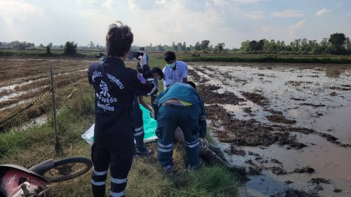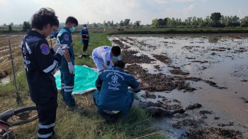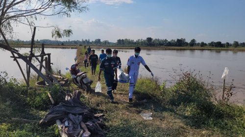 เมื่อเวลา 13.00 น. วันที่ 9 ธ.ค.2565 พ.ต.ท.อนุชา เนตรจินดา สว.(สอบสวน) สภ.บางระกำ จ.พิษณุโลก รับแจ้งมีเหตุฆ่ากันตายบริเวณกลางทุ่งนาบ้านดอนอภัย หมู่ที่ 10 ต.บ่อทอง ไปตรวจสอบพร้อมด้วย พ.ต.อ.ทัพธนพล ปรุงประทิน ผกก.สภ.บางระกำ พ.ต.ท.เกตุชัย นาสอน รอง ผกก.(สอบสวน) สภ.บางระกำ ว่าที่ พ.ต.ท.หญิง ศีลสุภัทร์ อุ่นขจี นวท.(สบ 2) กลุ่มงานตรวจสถานที่เกิดเหตุ ศูนย์พิสูจน์หลักฐาน 6 และเจ้าหน้าที่หน่วยกู้ภัยพิษณุโลก มูลนิธิประสาทบุญสถาน พบร่างผู้เสียชีวิตนอนหงายอยู่ริมคันนา ใกล้กันพบรถจักรยานยนต์ยี่ห้อฮอนด้าเวฟ 100 ไม่ติดแผ่นป้ายทะเบียนล้มคว่ำอยู่ จึงให้เจ้าหน้าที่กู้ภัยนำขึ้นร่างมาชันสูตรบนคันนา