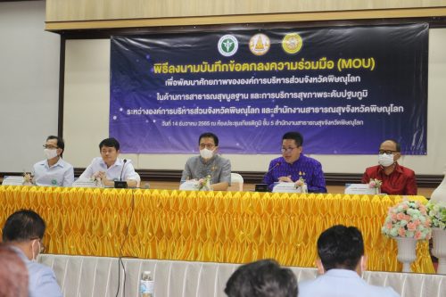 เมื่อเวลา 11.00 น.วันที่ 14 ธันวาคม 2565 ห้องประชุมเกียรติภูมิ สำนักงานสาธารณสุขจังหวัดพิษณุ โลก สำนักงานสาธารณสุขจังหวัดพิษณุ โลก องค์การบริหารส่วนจังหวัดพิษณุ โลก สำนักงานสาธารณสุขจังหวัดพิษณุ โลก จัดพิธีลงนามบันทึกข้ อตกลงความร่วมมือ (MOU) เพื่อพัฒนาศักยภาพขององค์การบริ หารส่วนจังหวัดพิษณุโลก ในด้านการสาธารณสุขมูลฐานและบริ การสุขภาพระดับปฐมภูมิ