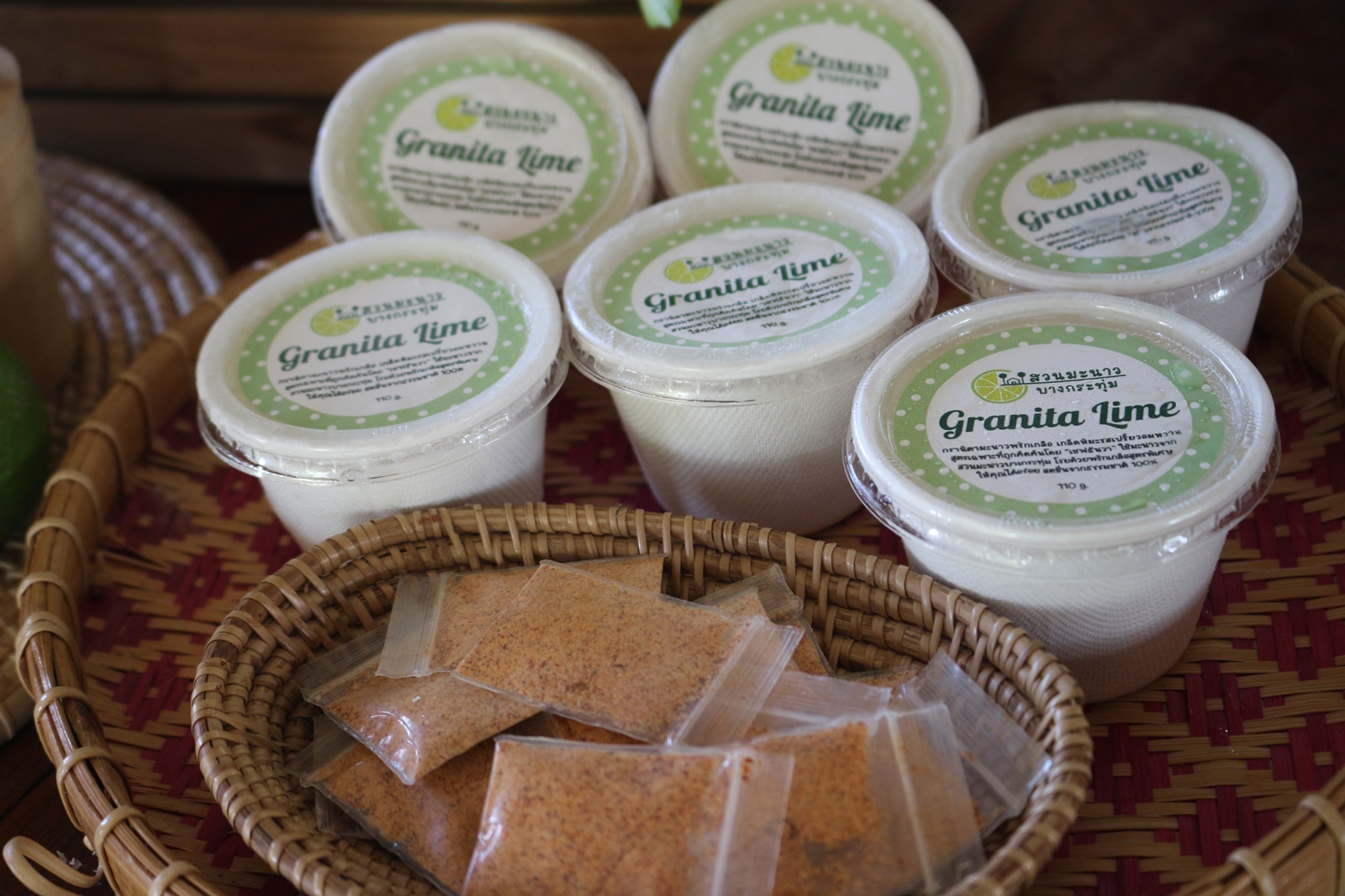 นางสาวจรัญญา กาญจนะ อายุ 39 ปี จุดเริ่มต้นคือก่อนหน้านี้ พยายามหาผลิตภัณฑ์แปรรู ปมะนาวเพื่อรองรับสำหรั บมะนาวตกเกรดหรือมะนาวลูกลาย หรือในช่วงที่ราคามะนาวตกต่ำ จนกระทั่งมาพบโครงการ Smart wellness CBT เชฟธันวา ได้นำน้ำมานาวจากสวนมาทำ Chef table ออกมาเป็นกรานิตามะนาวพริกเกลื อและคือทุกคนที่ได้ชิมแล้วว๊ าวมากใครจะคิดว่าไอติมที่ทานกั บพริกเกลือมันได้จริงๆ จนเชฟธันวา ก็ได้มามอบลิขสิทธิ์การทำกรานิ ตามะนาวพริกเกลือให้กั บทางสวนมะนาวบางกระทุ่ม จึงเริ่มลงมือแปรรู ปโดยนำมะนาวตกเกรดหรือมะนาวลู กลาวผิวไม่สวย คือต้องบอกก่อนว่ ามะนาวสวนของเราเป็นมะนาวอินทรี ย์ไม่ใช้ยาฆ่าแมลง ดังนั้นการที่มะนาวผิวไม่สวย ผิวลายๆ เป็นเรื่องปกติ แต่ไม่ใช่มะนาวเสียเขาคื อมะนาวที่ใช้ได้ปกติเพียงแค่ผิ วไม่สวยไม่เงาเท่านั้นเอง