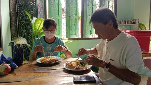 นายยุทธภูมิ สุวรรณพร อายุ 44 ปี เจ้าของร้านผัดไทยบ้านเจ้า 122 หมู่1 ต.วังทอง อ.วังทอง จ.พิษณุโลก เปิดเผยว่าเดินตนเองมีอาชีพเป็นสื่อมวลชน ที่ จ.พิษณุโลก จากนั้นได้ออกมาทำธุรกิจส่วนตัวก่อนย้ายไปปักหลักฐานที่เมืองกรุง ซึ่งธุรกิจช่วงแรกดีมาก จนมาประสบปัญหาทางเศรษฐกิจจากพิษโควิด ทำธุรกิจไม่สามารถไปต่อได้ จึงพาภรรยากลับมาบ้านเกิด ที่ อ.วังทอง ช่วงนั้นเหลือเงินติดตัวไม่มาก ประกอบกลับครอบครัว คุณป้าคุณอา มีอาชีพทำผัดไทยวังทองขายในตลาดอยู่แล้ว จึงได้นำสูตรผัดไทยมาสร้างเป็นอาชีพ โดยเริ่มต้นจากเงินที่มีอยู่ 600 บาท ซื้อวัตถุดิบทำผัดไทยมาเรียนรู้ ทดลองผัดตามสูตรแล้วโพสต์ของในกลุ่มคนวังทอง ปรากฏว่ามีคนสนใจสั่งซื้อจึงได้นำขอที่มาเรียนรู้ ผัดแล้วนำไปส่งลูกค้าตามที่สั่งไว้ ปรากฏว่าผลตอบรับดี จึงไปรับออเดอร์ทางออนไลน์แล้ว ขี่จักรยานยนต์ตระเวนส่งลูกค้า จนมีเงินเก็บก้อนหนึ่ง ก็มาเปิดขายหน้าร้าน ด้วยร้านอยู่ก่อนถึงศาลเจ้าแม่ทองคำเจ้าแม่ทับทิม 100 เมตร จึงตั้งชื่อร้านว่า ผัดไทยบ้านเจ้า