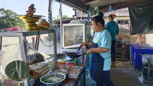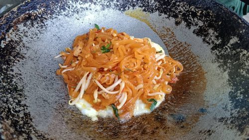 นายยุทธภูมิ กล่าวว่า หลังจากทุกอย่างลงตัว จึงมีเมนูผัดไทยออกมาเป็นหลากหลายหน้า โดยเฉพาะผัดไทยสูตรเด็ดที่ลูกค้าต้องลองชิมให้ได้คือ ผัดไทยบ้านเจ้า ที่เป็นผัดไทยที่มีเครื่องแน่น มีการผัดกากหมูกับกุ้งแห้งจนหอม เติมน้ำต้มเส้นจนนิ่มราดด้วยน้ำซอสผัดไทยที่ปรุงด้วยน้ำมะขามและสูตรลับเฉพาะของทางร้าน มีความลงตัว ใส่เต้าหู้ทอด พร้อมถั่วงอก ใบกุ้ยฉ่าย ตั้งกระทะ ใส่ไข่ติดพอแตก ใส่เส้นที่ผัดลงไปตกแต่งหน้าด้วย 5 หน้า ประกอบด้วย กุ้งลวก ไข่เยี่ยวม้า หมูหมัก หมูกรอบ และกากหมู(สูตรเฉพาะของร้านเรา) ซึ่งหกใส่หน้าครบจะราคาจานละ 80-100 บาท แต่หากเป็นผัดไทยธรรมดาใส่ไข่ไม่ใส่เครื่องราคาจานละ 40 บาท ผัดไทยกากหมู 50 บาท หน้าหมูหมักกากหมู 60 บาท ฯลฯ และด้วยผัดไทยของเราเป็นสูตรโบราณ จึงเน้นถั่วลิสงคั่ว พริกคั่วสดใหม่ทุกวัน มีการใส่มะม่วงเพิ่มความเปรี้ยว แต่หากใครชอบเปรี้ยวมากก็มีมะนาว และผักเคียงมาให้เพิ่มเติมด้วย ใส่ผักชีฝรั่งหั่นฝอยเพิ่มความหอม นับเป็นผัดไทยโบราณที่หาทานได้ยาก รสชาติกล่อมกล่อม อร่อยลงตัวมากอีกสูตรหนึ่งเลยทีเดียว