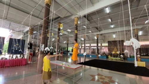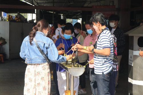 ขณะที่วัดราชบูรณะ นั้น พระภิกษุสงฆ์ ได้ร่วมกันจัดสถานที่โยงสายสิญจน์รอบศาลาการเปรียญของวัดราชบูรณะ เพื่อให้พุทธศาสนิกชนได้มาร่วมนั่งสวดมนต์ข้ามปี พร้อมตักบาตรรับอรุณ ห่มผ้าเจดีย์หลวง เพื่อความเป็นสิริมงคลของการต้อนปีใหม่ 2566