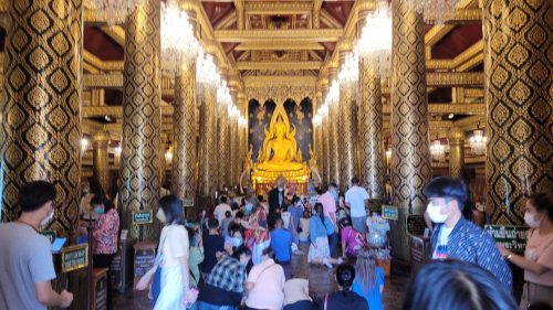 วันนี้ ( 29 ธ.ค.2565 ) ผู้สื่อข่าวรายงานว่า ในช่วงนี้เริ่มมีประชาชนต่างเดินทางกลับภูมิลำเนา ในช่วงเทศกาลปีใหม่ โดยเฉพาะในพื้นที่ภาคเหนือ ทำให้ถนนหลายสายเริ่มคึกคัก และแวะกราบไหว้ขอพรพระพุทธชินราช วัดพระศรีรัตนมหาธาตุ วรมหาวิหาร ซึ่งเป็นพระพุทธรูปที่งดงามที่สุดในประเทศไทย และพระคู่บ้านคู่เมืองพิษณุโลก เพื่อความเป็นสิริมงคลแก่ตนเองและครอบครัวในช่วงเทศกาลส่งท้ายปีเก่าต้อนรับปีใหม่ 2566 ปีนี้ โดยบางคนพามาเป็นครอบครัว ไหว้พระ ทำบุญ ถวายสังฆทาน สะเดาะเคราะห์ต่อดวงชะตา เพื่อรับสิ่งดี ในเทศกาลปีใหม่นี้ โดยทำให้บรรยากาศภายในวัดพระศรีรัตนมหาธาตุ วรมหาวิหาร หรือ วัดใหญ่ ต่างคึกคักตั้งแต่ช่วงเช้าที่ผ่านมา ทางวัดฯ ได้เปิดโอกาสให้ประชาชนและนักท่องเที่ยว ได้กราบไหว้พระพุทธชินราช แบบจำกัดเวลา เพื่อหมุนเวียนให้ประชาชนท่านอื่นได้สามารถเข้าไปกราบไหว้เช่นกัน และส่งผลให้รถยนต์บนท้องถนนบริเวณหน้าวัดใหญ่ และบริเวณสะพานนเรศวร จนถึงสี่แยกวัดคูหาสวรรค์ ติดขัดจำนวนมาก