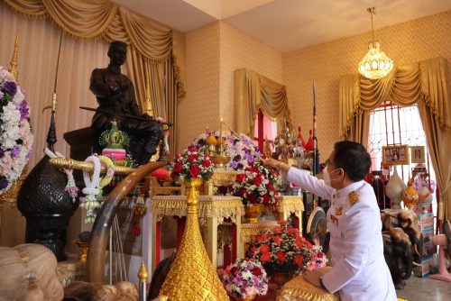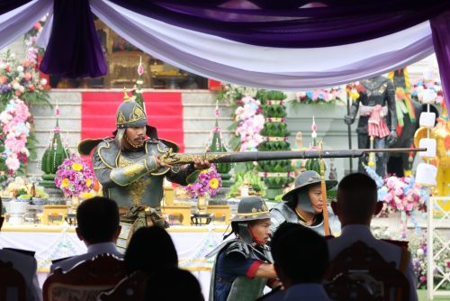 เมื่อเวลา 07.29 น. วันที่ 18 มกราคม 2566 ที่ศาลสมเด็จพระนเรศวรมหาราช บริเวณพระราชวังจันทน์ อำเภอเมือง จังหวัดพิษณุโลก นายภูสิต สมจิตต์ ผู้ว่าราชการจังหวัดพิษณุโลก พร้อมด้วย นายกเหล่ากาชาดจังหวัดพิษณุโลก หัวหน้าส่วนราชการ ร่วมพิธีบวงสรวงดวงพระวิญญาณสมเด็จพระนเรศวรมหาราช เนื่องในงานรัฐพิธีวันยุทธหัตถี หรือวันกองทัพไทย ประจำปี 2566 ซึ่งตรงกับวันที่ 18 มกราคมของทุกปี เพื่อเทิดพระเกียรติและน้อมรำลึกในพระมหากรุณาธิคุณสมเด็จพระนเรศวรมหาราช ที่ได้ทรงกระทำยุทธหัตถี มีชัยชนะเหนือมวลหมู่อริราชศัตรูทั้งปวง พระองค์ได้ประกาศอิสรภาพให้กับชนชาติไทย สร้างชาติไทยให้เป็นปึกแผ่น แข็งแกร่งและมีเอกราชตราบจนทุกวันนี้ ซึ่งแผ่นดินเมืองพิษณุโลก เป็นดินแดนถิ่นประสูติของพระองค์ ณ พระราชวังจันทน์แห่งนี้ โดยเมื่อถึงวันที่ 18 มกราคมของทุกปี พสกนิกรชาวจังหวัดพิษณุโลกทุกหมู่เหล่า ต่างร่วมแซ่ซ้องสรรเสริญสดุดีวีรกรรมไทย ในความเสียสละขององค์สมเด็จพระนเรศวรมหาราช สมเด็จพระเอกาทศรถ และพระพี่นางสุพรรณกัลยา ที่ศาลสมเด็จพระนเรศวรมหาราชภายในพระราชวังจันทน์แห่งนี้