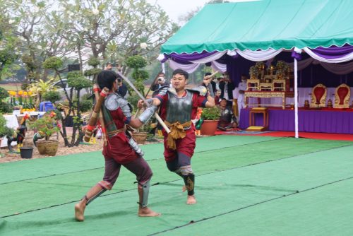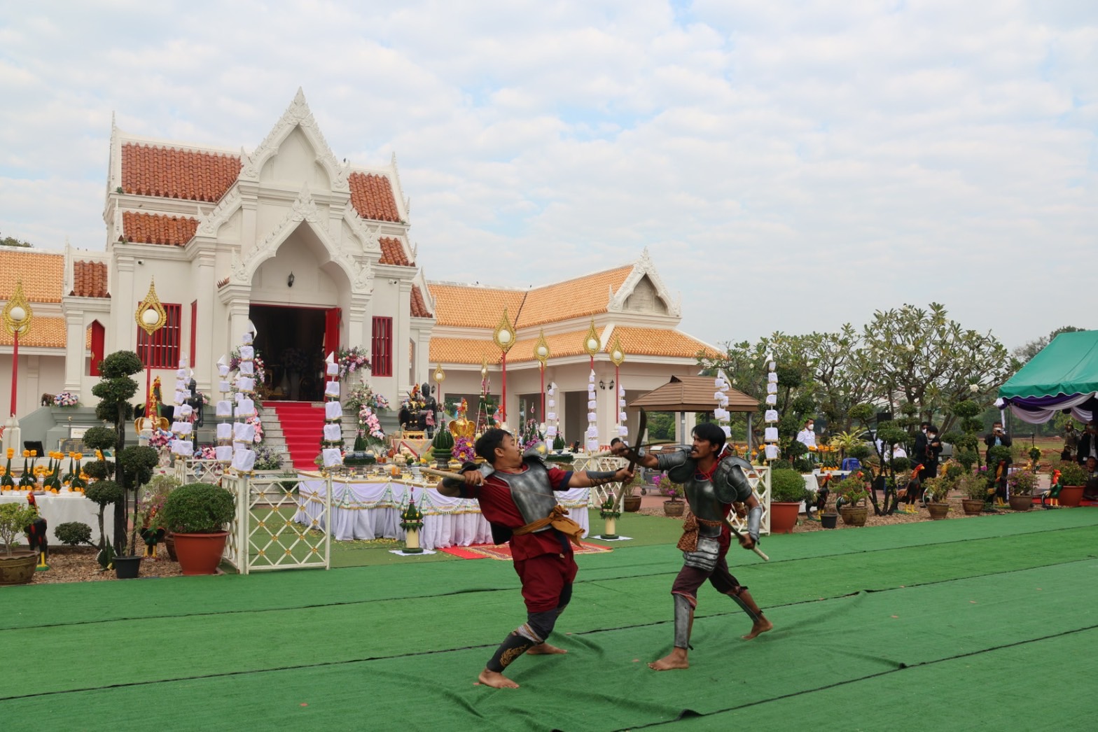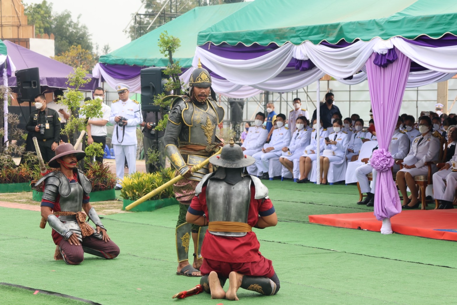 ภายในพิธีดังกล่าว มีพิธีสงฆ์ พิธีพราหมณ์ บัณฑิตประกาศพระบรมราชโองการบวงสรวง จากนั้นผู้ว่าราชการจังหวัดพิษณุโลก กล่าวถวายราชสดุดีเฉลิมพระเกียรติและร่วมร้องเพลงมาร์ชนเรศวร การแสดงศิลปะป้องกันตัว จากชุดองค์การแสดงศิลปะการต่อสู้ ทีมเสือ ยุทธศิลป์ ทีมงานยุทธศิลป์ แผ่นดินสยาม ทีมสตั๋น แสดงเสียง ทีมสองแควรณยุทธ และจากชมรมศิลปะการต่อสู้ด้วยอาวุธโบราณ กองพันซ่อมบำรุงที่ 23 กองบัญชาการช่วยรบที่ 3 การแสดงชุดไก่ชนพระนเรศวรกับไก่ชนพม่า และชุดระบำไก่ จากโรงเรียนพิษณุโลกปัญญานุกุล