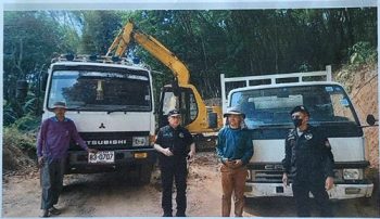 บริเวณเกิดเหตุพบรถแบคโฮ สีเหลือง ยี่ห้อ KOMATSU กำลังขุดตักดินใส่รถบรรทุกหกล้อ ยี่ห้อมิตซูบิชิ สีขาว ทะเบียน 8 3-0707 พิษณุโลก มีนายจิรวัตร ใบกุหลาบ อายุ 22 ปี เป็นคนขับ และรถบรรทุกหกล้อมิตซูบิชิ สีขาว ไม่ติดแผ่นป้ายทะเบียน ป้ายเสียภาษีระบุ ทะเบียน 81-0463 จอดรอใส่ดินเจ้าหน้าที่จึงตรวจสอบสอบถามคนขับรถแบคโฮ ชื่อนายเสกสรร ศรีรุ่งเรือง อายุ 39 ปี ให้การกับเจ้าหน้าที่ว่าตนเป็นเจ้าของรถแบคโฮ และรถบรรทุกหกล้อทั้ง 2 คัน ตนเป็นเจ้าของรถแบคโฮ และรถบรรทุกหกล้อทั้ง 2 คัน เข้า และออกไปขายให้กับชาวบ้านในเขตเทศบาลตำบลบ้านแยงคันละ 900 บาท