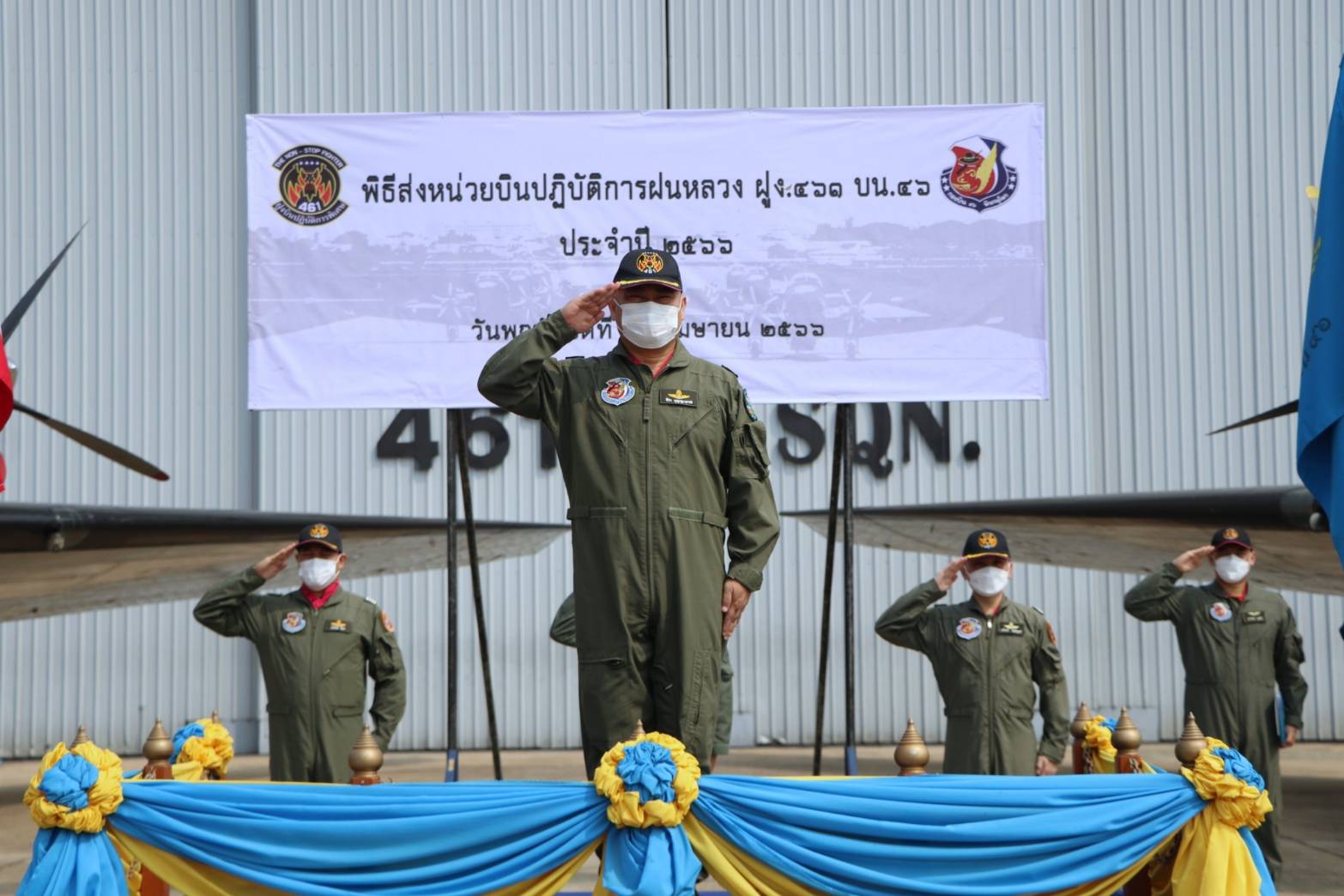 โดยขณะนี้ หน่วยบินปฏิบัติการฝนหลวง ฝูงบิน 461 กองบิน 46 ออกปฏิบัติภารกิจฝนหลวงตามโครงการในพระราชดำริ จำนวน 3 ฐานปฏิบัติการ ประกอบด้วย กองบิน 56 อ.หาดใหญ่ จังหวัดสงขลา (ไปก่อนหน้าแล้ว) กองบิน 21 จังหวัดอุบลราชธานี และกองบิน 7 จังหวัดสุราษฎร์ธานี) ตามคำร้องขอตามหน่วยบิน ที่ร้องขอ เพื่อความเพียงในการปฏิบัติหน้าที่ในการทำฝนหลวงเติมน้ำในเขื่อน และพื้นที่ทางการเกษตร บรรเทาปัญหาภัยแล้งในพื้นที่ โดยแต่ละหน่วยที่ไปช่วยนั้น เป็นเครื่องบินลำเลียงแบบที่ 2 ก หรือ BT-67 เป็นเครื่องบินปฏิบัติการฝนหลวง สามารถบรรทุกสารฝนหลวงได้เที่ยวบินละ 2,500 กิโลกรัม ไปปฏิบัติหน้าที่ถึงเดือนกันยายน 2566 นี้
