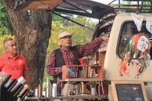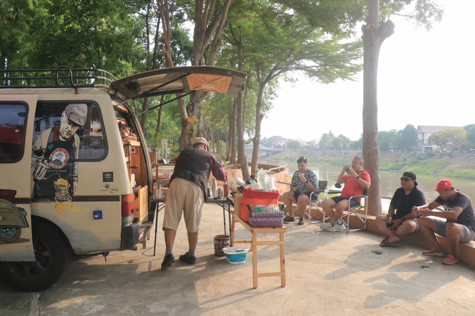 วันนี้( 30 เม.ย.) สำหรับผู้ที่ชื่นชอบในรสชาติกาแฟยามเช้า มีร้านแนะนำที่น่าสนใจ ที่นำรถตู้มาดัดแปลงเป็นร้านกาแฟสด ให้ประชาชนที่ชื่นชอบชิมรสกาแฟสดได้มานั่งชิมกาแฟดิฟสัมผัสบรรยากาศยามเช้าริมแม่น้ำน่าน เมืองพิษณุโลก ที่ได้มาจอดขายทุกเสาร์-อาทิตย์ ตั้งแต่เวลา 7.00 -10.30 น.ที่บริเวณริมแม่น้ำน่าน ฝั่งตรงข้ามวัดพระศรีรัตนมหาธาตุวรมหาวิหาร หรือวัดใหญ่ อำเภอเมือง จังหวัดพิษณุโลก ซึ่งสไตล์ของร้านจะมีประชาชน นักท่องเที่ยว มานั่งดื่มด่ำกับบรรยากาศริมน้ำน่านหน้าวัด พูดคุย และจิบกาแฟ อย่างคึกคัก ในบรรยากาศสบาย พร้อมกลิ่นอายเพลง ยุค 60 – 70 ให้เข้ากับบรรยากาศ จากรถตู้ขายกาแฟ COFFEE CLERK หรือที่เรียกว่า รถตู้ดิฟ คราฟคอฟฟี่ ของนายชัยพัชร์ สุขนิตย์ หรือ “ปลัดป๋อง” ปลัดเทศบาลตำบลวังทอง จ.พิษณุโลก