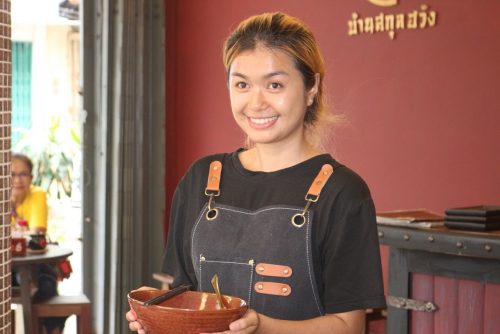 นางสาวภัทร์ธีรา ทุ่งโพธิแดง อายุ 31 ปี หรือคุณฝ้าย เจ้าของร้านได้เล่าให้ฟังว่าเติบโตในครอบครัวคนไทยเชื้อสายจีน แซ่ฮวัง และก็เติบโตมากับเมนูอาหารรุ่นอาม่า ที่ส่งต่อมายังรุ่นพ่อรุ่นแม่ กับเมนูข้าวมันไก่ บะหมี่เกี๊ยว หลังที่อาม่าเสียชีวิตก็อยากจะเอาความทรงจำรสชาติอาหารที่อาม่าทำให้ทานตั้งแต่เด็กๆ บอกเล่าเรื่องราวความทรงจำดีๆ ของครอบครัวผ่านอาหารในแต่ละจาน แต่จะนำมาประยุกต์เพิ่มความสร้างสรรค์แปลกใหม่ในสไตล์เด็กรุ่นหลังอย่างเราๆ แต่ยังคงไว้ซึ่งกลิ่นอาย ของอาหารดั้งเดิมที่เราคุ้นเคยกัน ประกอบกับเราคิดว่า เมนูข้าวมันไก่ ทำไมถึงเป็นได้แค่อาหารสตรีทฟู๊ดทั่วๆไป เหมือนๆกัน ต่อให้อร่อยแค่ไหนคนก็ยังมองเป็นอาหารสตรีทฟู๊ดอยู่ดี เราอยากอัพเกรดอาหารสตรีทฟู๊ดให้มันมีความน่าสนใจ ให้เป็นเหมือนเป็นของขึ้นชื่อ อยากพัฒนาสตรีทฟู๊ดไทยให้เป็นซอฟต์เพาเวอร์ ที่ใครๆก็ต้องรู้จักเหมือนเป็นของขึ้นชื่อจังหวัดอะไรประมาณนั้น เพื่อให้บอกว่าคนจังหวัดอื่นๆที่เขาแบบวิ่งผ่านมาผ่านไปให้แวะมาลองกินข้าวมันไก่ และต้องมาลองที่พิษณุโลก