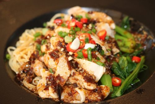 โดยแต่ละเมนูที่เราถ่ายทอดออกมาเราก็เอาสูตรของอาม่าที่เป็นคนจีน ประกอบกับเราเดินทางไปจีนบ่อย ได้วัฒนธรรมอาหารของประเทศจีนมาด้วย เราก็นำมาปรับปรุงให้เข้ายุคเข้าสมัย มาประยุกต์กับสูตรอาหารใหม่ๆ ให้ลงตัว ผสมผสานข้อดีของทั้งข้าวมันไก่ไหหลำ และข้าวมันไก่สิงคโปร์ มารวมกัน ฟิลลิ่งชุ่มฉ่ำแบบสิงคโปร์ แต่อร่อยหอมเข้มข้นแบบไหหลำ และปรับรสชาติให้เข้ากับคนไทย จนออกมาเป็นสูตรประจำบ้านสกุลฮวัง สำหรับเมนูซิกเนเจอร์ที่ร้าน คือเมนูข้าวมันไก่เผ็ดเสฉวน 1 เซ็ตทานได้ 2 คน แบบอิ่มๆ ในราคาเพียงเซ็ตละ 119 บาท บะหมี่ไก่เผ็ดเสฉวน เซ็ตละ 129 บาท บะหมี่เกี๊ยวหมูแดง บะหมี่เกี๋ยวหมูแดงซุปน้ำนมหม่าล่า ชามละ 95 บาท เป็นเมนูที่นำเอาเอกลักษณ์ความหอมนัวของน้ำนม มาเติมแต่งเข้ากับตัวน้ำพริกหม่าล่า สูตรประยุกต์ที่มาจากเมืองจีน และเมนูอื่นๆ อีกหลากหลาย ตบท้ายด้วยเมนูขนมปังปิ้งสังขยา 3 สี (เซ็ตละ 69 บาท) ขนมปังปิ้งใบเตย/ชาไทย (เซ็ตละ 49 บาท) ส่งท้ายด้วยเมนูขนมหวานโบราณอย่าง โอ้วเอ๋ว เมนูขนมหวานโบราณวัฒนธรรมการกินของชาวจีนฮกเกี้ยน ที่ผสมผสานเข้ากับน้ำแข็งใสของคนไทย โดยบ้านสกุลฮวัง นำเอกลักษณ์ความนุ่มหนึบของเนื้อโอ้วเอ๋วดั้งเดิม มาดัดแปลงเพิ่มรสชาติและความแปลกใหม่ มีให้เลือกทั้งโอ้วเอ๋ว เลม่อน+ลิ้นจี่ และ โอ้วเอ๋วบัวหลวง หอมอร่อย นุ่มหนึบ ทานแล้วชื่นใจ