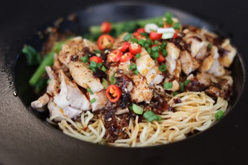วันที่ 26 มิถุนายน 2566 ผู้สื่อข่าวพาไปชิมเมนูข้าวมันไก่ ที่ไม่ธรรมดา ทั้งรสชาติและความแปลกใหม่ กับเมนูซิกเนเจอร์ ข้าวมันไก่เผ็ดเสฉวน บะหมี่ไก่เผ็ดเสฉวน บะหมี่เกี๊ยวหมูแดงน้ำนมหม่าล่า บะหมี่เกี๊ยวหมูกรอบ ซุปน้ำนม ตบท้ายด้วยเมนู ขนมปังปิ้งสังขยา 3 สี และเมนูขนมหวานโบราณอายุกว่า 200 ปี อย่างโอ้วเอ๋วเลม่อนลิ้นจี่ และโวเอ๋วบัวหลวง ที่ข้าวมันไก่บ้านสกุลฮวัง ตั้งอยู่ใจกลางเมืองพิษณุโลก ในย่านตลาดใต้ ตลาดวัฒนธรรมพื้นถิ่น ที่ใครๆ ก็รู้จัก ร้านเปิดมาได้ 7 เดือน ลูกค้าตรึม ติดใจทั้งในรสชาติและความแปลกใหม่ที่ผสมผสานเข้ากันได้อย่างลงตัว ในบรรยากาศร้านตกแต่งเป็นสไตล์จีน นั่งสะดวก ปลอดโปร่ง