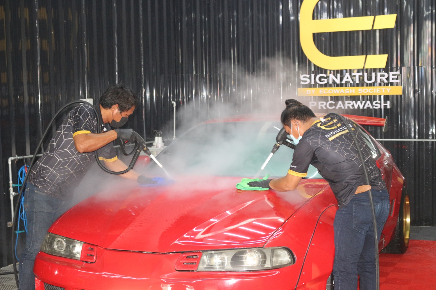 นายธนัตถ์ภัทร อเนกรัตนทรัพย์ ผู้บริหารอีโค่วอชโชไซตี้ กล่าวว่า สำหรับอี ซิกเนเจอร์ บาย พีอาร์ คาร์วอช หรืออีโค่วอช เครื่องนำเข้าจากประเทศอิตาลี สินค้าทุกอย่างในระบบนำเข้าหมด เป็นนวัตกรรมที่ดีที่สุดในประเภทของการล้างรถ ได้สะอาดกว่า เงางามกว่า ใช้น้ำน้อยกว่า รถทั่วไปจากรถปกติที่เคยใช้ 200 ลิตร แต่สำหรับเราลดใช้ น้ำเพียง 10 กว่าลิตรเท่านั้น นอกจากช่วยลดการใช้น้ำในการทำความสะอาดแล้ว ยังลดปริมาณน้ำเสีย ไม่ก่อให้เกิดมลภาวะ ผลเสียต่อสิ่งแวดล้อม ระบบนี้เหมือนเป็น การสปารถ เพราะใช้ระบบความร้อนในการ ฉีดพ่นไอน้ำ เฉพาะเครื่องที่นำมาใช้ เหมือนระบบร้านคาร์แคร์ทั่วไป แต่เครื่องเราใช้เครื่องระบบไอน้ำ ที่มีมูลค่ากว่า 300,000 บาท/เครื่อง ในขณะที่ราคาในการล้างรถก็ไม่ได้แพงแตกต่างจากร้านคาร์แคร์อื่นๆ แต่ทำความสะอาดได้ลึกกว่ามากกว่า เป็นนวัตกรรมใหม่ล่าสุด ที่ยังไม่มีใครนำมาใช้ สามารถปกป้องสีรถได้นานถึง 5 ปี ทำให้สีรถเงาล้างออกได้ง่าย ลดเปื้อนยาก มีการเคลือบสี ซักเบาะ ดูดฝุ่นธรรมดาก็มี แต่ของเราจะให้ความใส่ใจกับรถของลูกค้ามากกว่า ราคาเริ่มต้นที่ 390 บาท เป็นระบบไอน้ำ ล้างระบบโฟมทั่วไปก็มี คนที่อยากล้างด้วยโฟมก็จะถูกกว่า มีโปรโมชั่นในงาน 199 บาท ซึ่งคนมาร่วมงานจะได้ Gift Voucher มาทดลองใช้บริการอีกด้วย