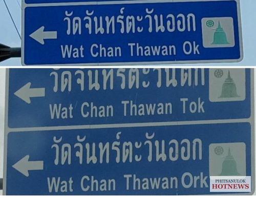 พิษณุโลก ผู้อำนวยการแขวงการทางหลวงพิษณุโลก ที่ 1 เผยป้ายท่องเที่ยวบอกเส้นทาง Wat Chan Thawan Ok ได้เขียนตาม dictionary แต่เพื่อป้องกันความสับสนได้ให้เจ้าหน้าที่เตรียมเปลี่ยนชื่อ เป็น Wat Chan Thawan Ork ตามชื่อของวัด