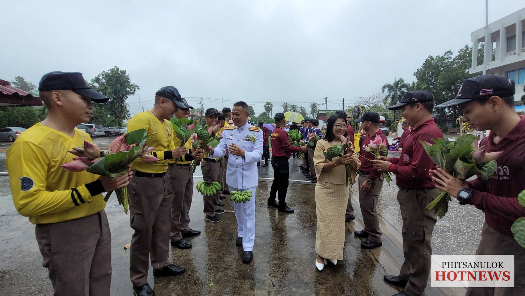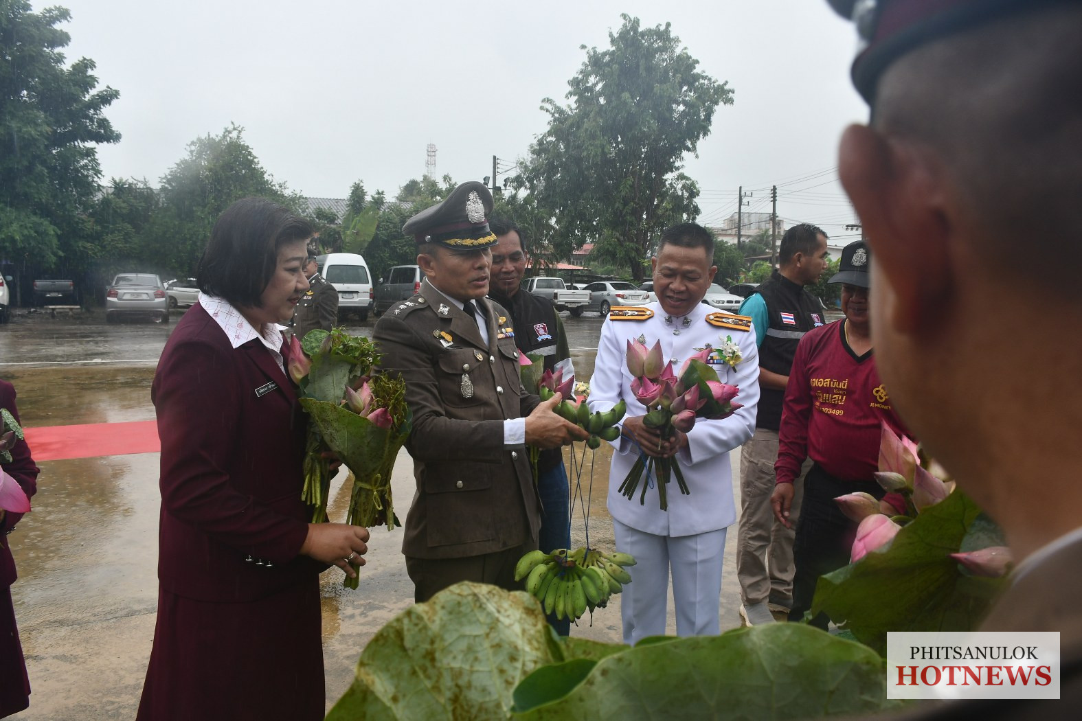 ขณะที่ พ.ต.อ.วิสุทธิ์ คล้ายแสง ผกก.สภ.วัดโบสถ์ กล่าวว่า เนื่องจาก สภ.วัดโบสถ์ เป็น โรงพักที่เข้าร่วมโครงการโรงพักพันธุ์ดี ให้เจ้าหน้าที่ตำรวจและครอบครัวปลูกพืชผักสวนครัว เอาไว้รับประทาน ส่วนที่เหลือ สามารถนำไปจำหน่าย เป็นรายได้เสริม โดยส่วนหนึ่งของพื้นที่ก็ได้ปลูกดอกบัวหลวง ไว้ด้วย จึงได้เกิดไอเดีย นำดอกบัวหลวง แทนดอกกุหลาบ มาแสดงความยินดี อีกทั้งก็ยังนำพืชผักสวนครัว ไม่ว่าจะเป็น กล้วย มะเขือ ผักบุ้ง ก็นำมามอบให้กำลังใจแก่นายตำรวจที่เกษียนอีกด้วย