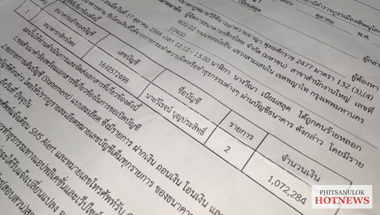 พิษณุโลก สาวใหญ่สูญเงินก้อนสุดท้ายในชีวิตกว่า 1 ล้านบาท ฝากเตือนเป็นอุทาหรณ์ หลงเชื่อมิจฉาชีพอ้างตัวเป็นกรมบัญชีกลางติดต่อมาว่าเอกสารไม่เรียบร้อย หลังทำเรื่องสามีเสียชีวิตผ่านหน่วยงานต้นสังกัด เพื่อรับเงินบำเหน็จตกทอด สุดท้ายเงินหายไปในพริบตา