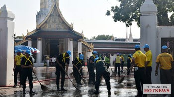 ทั้งนี้มีการแบ่งแต่ละจุดให้กับกำลังพล และหน่วยงานแต่ละแห่งรับผิดแต่ละพื้นที่ ในการทำความสะอาด ตัดกิ่งไม้ใบหญ้า ตั้งแต่พระราชวังจันทน์ ตลอดสองฝั่งแม่น้ำน่าน และที่บริเวณวัดใหญ่ ทำการฉีดน้ำล้างทำความสะอาด โดยมีภาคส่วนเอกชน ได้นำหลอดไฟฟ้าแผงโซล่าเซลล์มาสนับสนุน จำนวน 109 ชุด และมีน้ำดื่ม ได้รับการสนับสนุนจากทั้งภาครัฐและเอกชน นำมามอบให้อีกจำนวนหนึ่ง เพื่อนำไปใช้ในกิจกรรมดังกล่าว