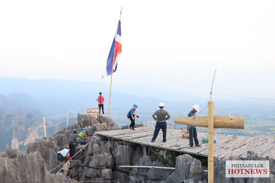 วันนี้( 1 ธ.ค.) ผู้สื่อข่าวรายงานว่า ต.บ้านมุง อ.เนินมะปราง จ.พิษณุโลก ซึ่งเป็นพื้นที่ภูเขาหินปูนรายล้อม ทำให้มีนักท่องเที่ยวต่างมาเที่ยวความงามของธรรมชาติตลอดทั้งปี โดยล่าสุดกลุ่มชาวบ้านมุงเหนือ หมู่ที่ 1 ต.บ้านมุง นำโดยนางสาวนวรากร น้อยพันธ์ ผู้ประสานงานกลุ่มเที่ยวบ้านมุง และรองประธานวิสาหกิจชุมชนปานันทนาการภูผาหินบ้านมุง อ. เนินมะปราง จ.พิษณุโลก พร้อมด้วยชาวบ้านหมู่ 1 ได้รวมตัวกันเปิดกิจกรรมท่องเที่ยวชุมชนเชิงผจญภัยแบบพักแรม หรือ แค้มป์ยอดเขา ในการเดินป่าศึกษาธรรมชาติ พื้นที่ป่านันทนาการภูผาหินบ้านมุง บริเวณเขาผาแดง-เขากังหันลม เพื่อให้นักท่องเที่ยวที่ชื่นชอบผจญภัยปืนเขาหินปูน ได้มาชมความงามของธรรมชาติ แบบ 360 องศา บนยอดเขาหินปูน เขาผาแดง และเขากังหันลม พร้อมกับได้นอนบนแคร่ไม้ ที่ชาวบ้านจัดทำขึ้นบริเวณยอดเขา ชมดาวบนฟ้า และดาวบนดิน ในยามค่ำคืน ยามเช้าชมหมอกและทิวทัศน์ที่สวยงาม นอกจากนี้ยังชิมอาหารพื้นถิ่นจากฝีมือชาวบ้านมุงเหนือ ในทริป 2 วัน 1 คืน
