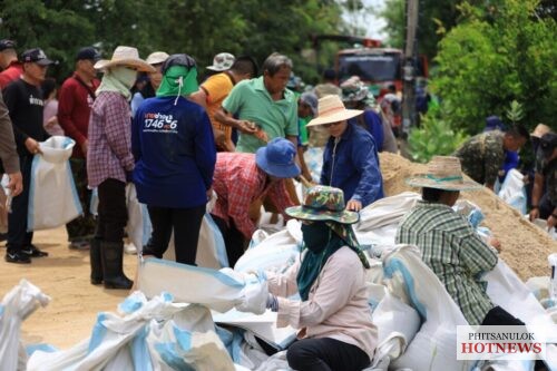 สถานการณ์น้ำท่วมพิษณุโลกยังวิกฤติ ถนนพนังดินบ้านเหนือ ต.เนินกุ่ม อ.บางกระทุ่ม ถูกน้ำจากคลองเนินกุ่มกัดขาดกว้างกว่า 10 เมตร มวลน้ำทะลักท่วมบ้านเรือน 30 หลังคาเรือน ขณะเจ้าหน้าที่ อปท. ทหาร ตำรวจ กู้ภัย และชาวบ้านกว่า 100 คน เร่งระดมกำลังซ่อมแซมถนนและกั้นพนังดิน หวังหยุดกระแสน้ำไหลบ่าท่วมหมู่บ้านเพิ่มเติม