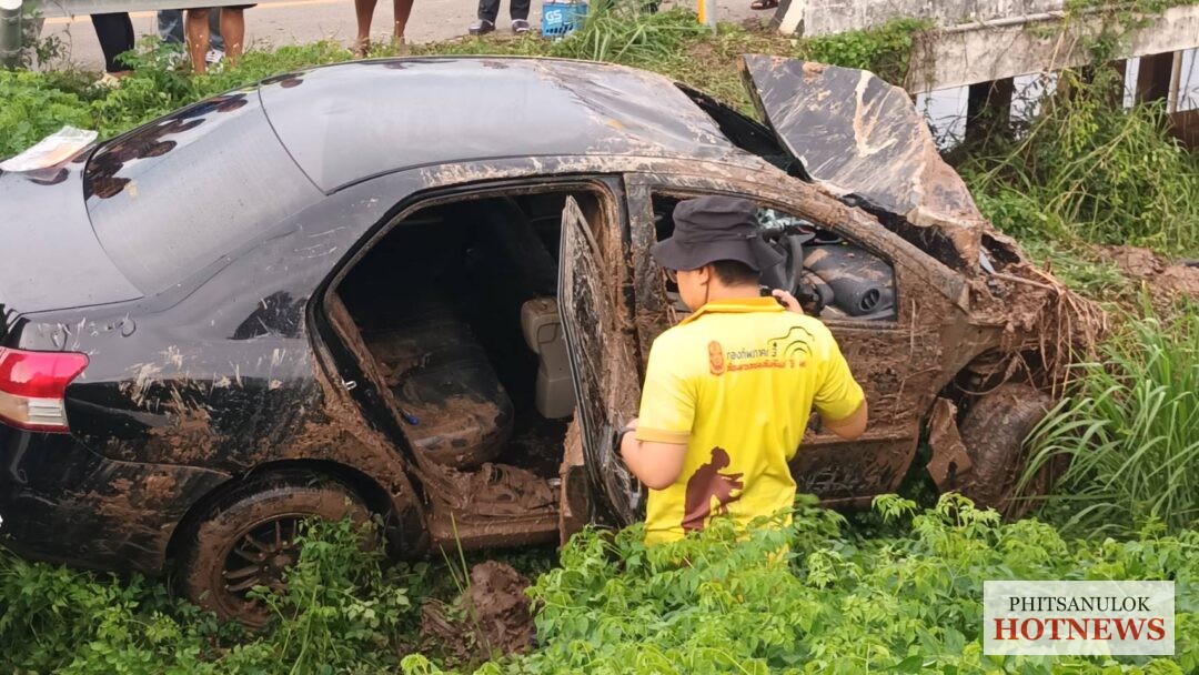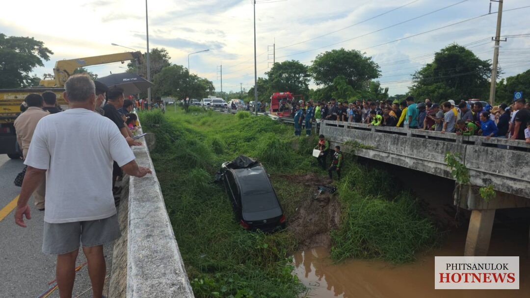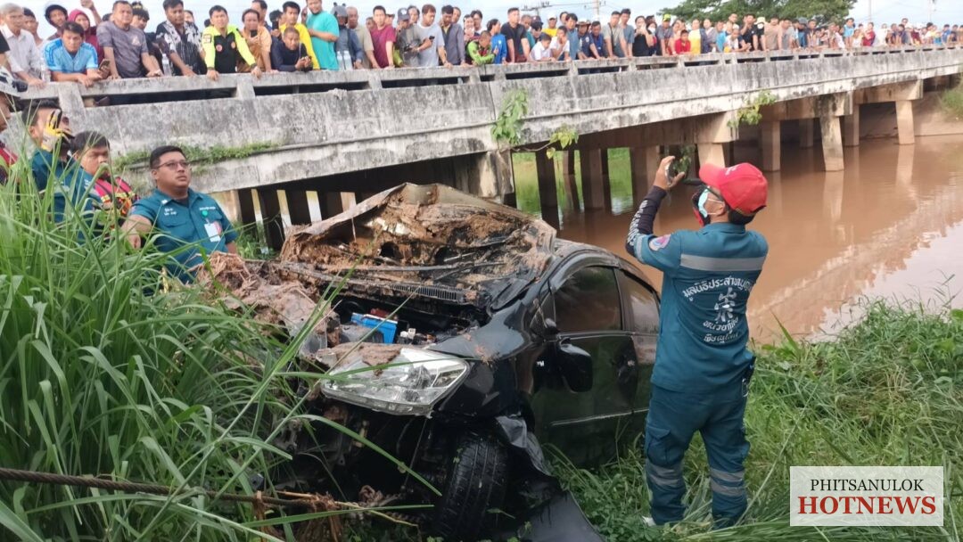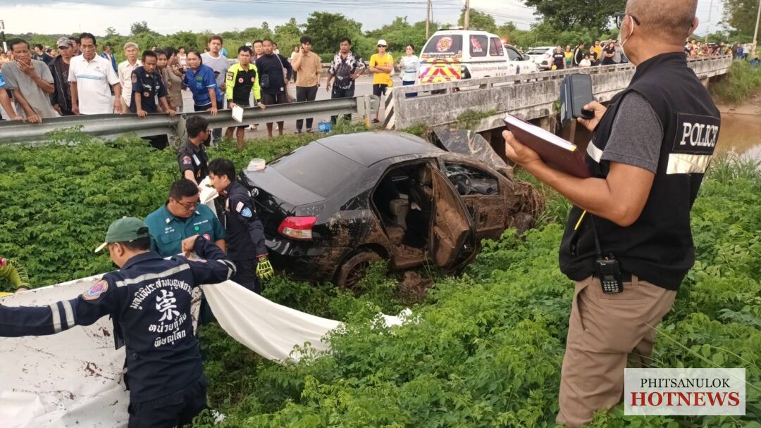 พิษณุโลก เกิดอุบัติเหตุสลดกลางเมืองพิษณุโลก รถเก๋งโตโยต้า วีออส สีดำ เสียหลักพุ่งตกสะพานข้ามคลองชลประทาน ถนนเลี่ยงเมืองสายสี่แยกแสงดาว–บ้านกร่าง จมน้ำลึกกว่า 4 เมตร กู้ภัยงมหากว่า 2 ชั่วโมง ก่อนกู้ขึ้นมาได้ พบศพหนุ่มชาวพะเยา วัย 42 ปี เสียชีวิตติดเบาะหลัง