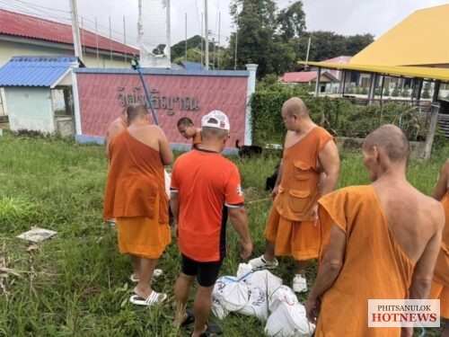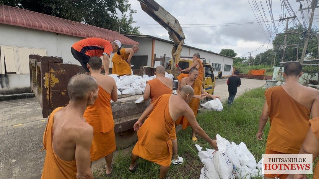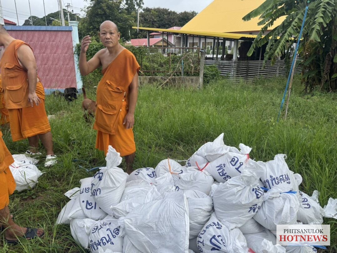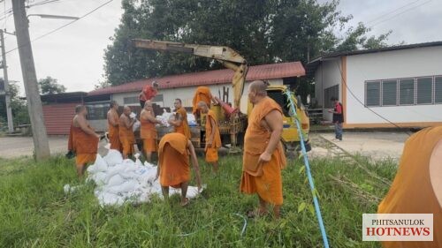 ขณะนี้ที่วัดโพธิญาณ ต.หัวรอ อ.เมือง จ.พิษณุโลก ซึ่งเป็นพื้นที่เหนือเมืองพิษณุ โลก พระครูสุนทรโรจนคุณ เจ้าอาวาสวัดโพธิญาณ พร้อมด้วยพระ เณร ร่วมกันกรอกกระสอบทราย เพื่อนำมาบล๊อคท่อระบายน้ำ ขนาดใหญ่ หวั่นแม่น้ำน่านทะลักย้อนท่อเข้ าท่วมพื้นที่วัดโพธิธาณ พื้นที่บ้านเกาะแม้ว โรงทอ และพื้นที่ส่วนราชการ ที่ลุ่มต่ำ ในตำบลหัวรอทั้งหมดได้ เนื่องจากในปี 54 ที่ผ่านมาระดับน้ำแม่น้ำน่าน เคยล้นทะลักท่อ ท่วมพื้นที่ดังกล่าวก่อนตัวเมื องเขตเศรษฐกิจพิษณุโลกมาแล้วครั้ งหนึ่ง