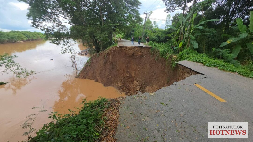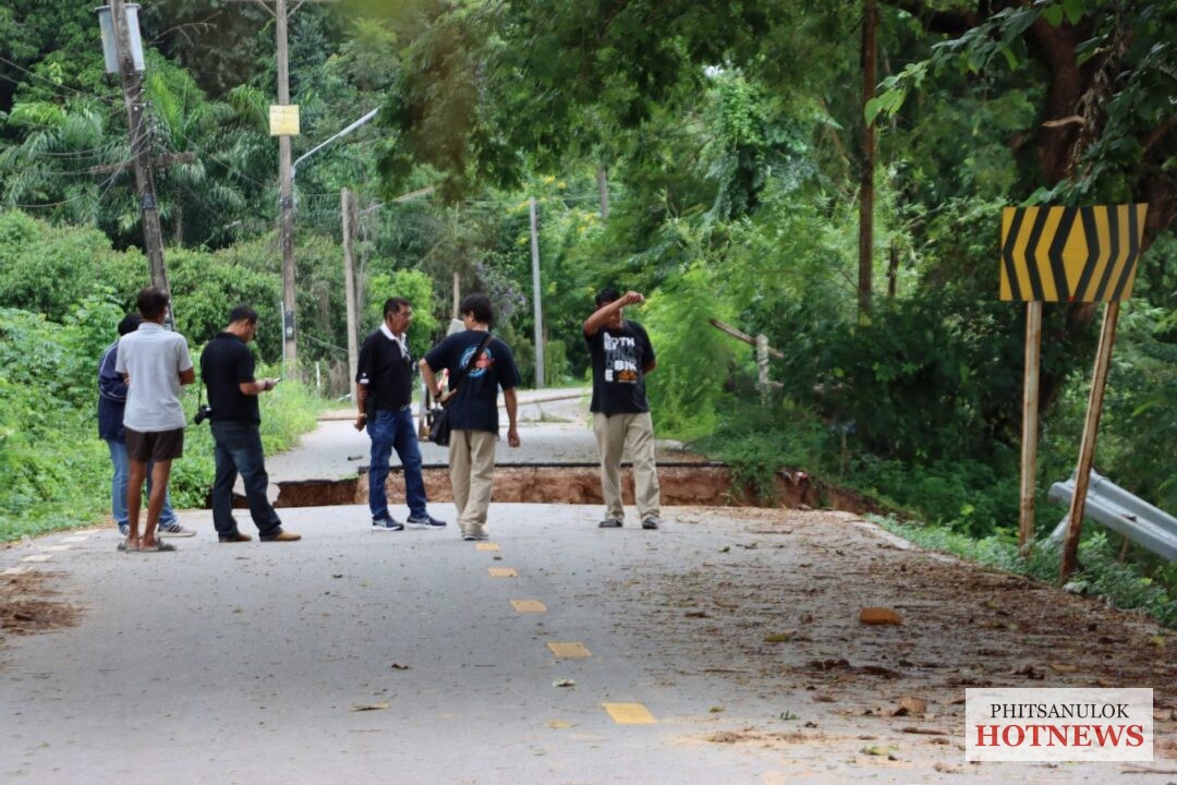 สำหรับสาเหตุของตลิ่งทรุดตัวและถนนขาดครั้งนี้ คาดว่าเป็นผลมาจากพายุฝนที่ตกหนักลงมาในพื้นที่ ประกอบกับก่อนหน้านี้แม่น้ำน่านได้ล้นตลิ่งจากพายุบัวลอย ก่อนที่ฝนจะทิ้งช่วงไปและแม่น้ำน่านลดลงอย่างต่อเนื่อง และจุดเกิดเหตุเป็นโค้งน้ำขนาดใหญ่ทำกระแสน้ำกัดเซาะแนวตลิ่ง และดินชั้นบนเป็นดินร่วนซุยอุ้มน้ำและเป็นโพรงใต้ดินจึงเกิดการพังทลายของแนวตลิ่งริมแม่น้ำน่านมีดินสไลด์หลายจุดซึ่งคาดว่าขยายวงกว้างไปเรื่อยๆ ในระยะนี้หน่วยงานที่เกี่ยวข้องได้เฝ้าระวังติดตามสถานการณ์ เตรียมความพร้อมทั้งเครื่องมือ อุปกรณ์ เครื่องจักรกล เพื่อให้ความช่วยเหลือพี่น้องประชาชนทันทีตลอด 24 ชั่วโมง เมื่อได้รับความเดือดร้อนหรือได้รับการร้องขอต่อไป.