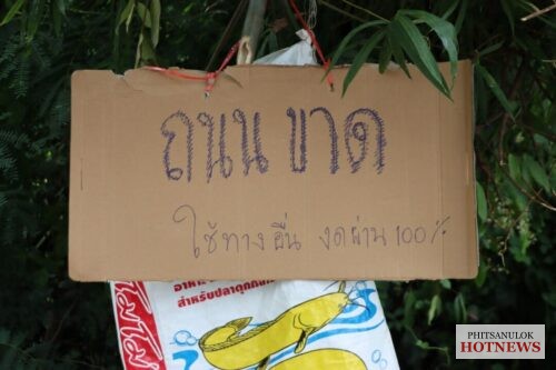 ด้าน นายสมบัติ ทองเถื่อน สารวัตรกำนันตำบลจอมทอง กล่าวว่า หลังจากรับแจ้งจากชาวบ้านเมื่อค่ำคืนที่ผ่านมา ซึ่งมีชาวบ้านกำลังเดินทางกลับจากวัดหลังจากไปเตรียมงานลอยกระทงประจำปีและใช้เส้นทางบริเวณจุดเกิดเหตุ แต่ต้องระทึกตกใจสุดขีดเมื่อพบว่ามีดินสไลด์ทำตลิ่งทรุดพังทลายจนถนนขาดเกือบร่วงตกลงไป โชคดีที่ไม่มีใครได้รับอันตรายบาดเจ็บหรือเสียชีวิต จึงได้ลงพื้นที่ตรวจสอบทันทีพบว่าบริเวณที่มีดินสไลด์นั้นเป็นถนนเลียบริมแม่น้ำน่านภายในหมู่บ้าน ที่เป็นส้นทางสัญจรไปมาของชาวบ้านตำบลจอมทอง ที่ขณะนี้ได้รับความเดือดร้อนไม่สามารถใช้สัญจรไปมาได้สะดวก เนื่องจากเมื่อคืนที่ผ่านมามีดินสไลด์จนถนนขาดกว้างประมาณ 15 เมตร จึงได้ประสานกับ อบต.จอมทอง นำท่อปูนและแผงเหล็กมากั้นขวางถนนเอาไว้ก่อน เพื่อป้องกันไม่ให้ชาวบ้านใช้ถนนที่กำลังชำรุดอยู่ พร้อมกับออกประกาศเสียงตามสายเน้นย้ำแจ้งเตือนให้พี่น้องประชาชนในพื้นที่หลีกเลี่ยงใช้เส้นทางดังกล่าวแล้ว อยู่ระหว่างประสานหน่วยงานที่เกี่ยวข้องเข้ามาแก้ไขซ่อมแซมในเบื้องต้น ซึ่งก่อนหน้านี้ได้แจ้งไปยังกรมโยธาธิการและผังเมืองเพื่อของบประมาณมาทำแนวกั้นตลิ่งพังริมแม่น้ำน่านซึ่งอยู่ระหว่างรองบประมาณดังกล่าว