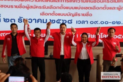 โอกาสนี้ พรรคเพื่อไทยจังหวัดพิษณุโลก ได้เปิดตัวผู้สมัคร ส.ส. ครบทั้ง 5 เขต ได้แก่