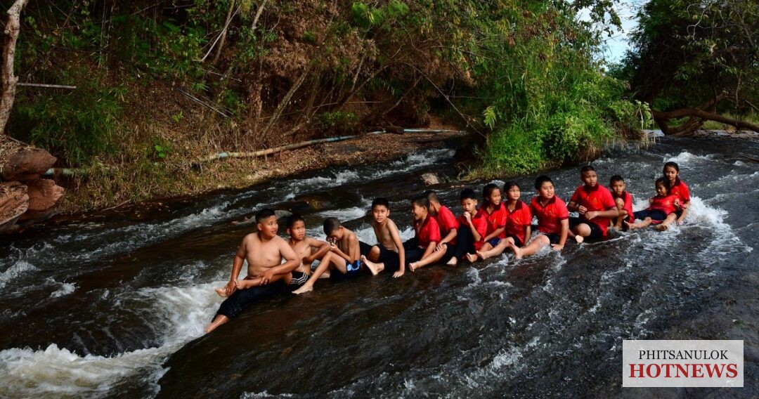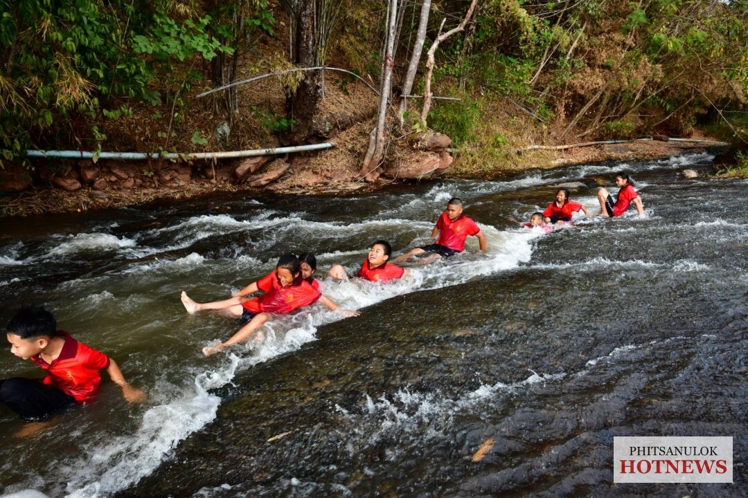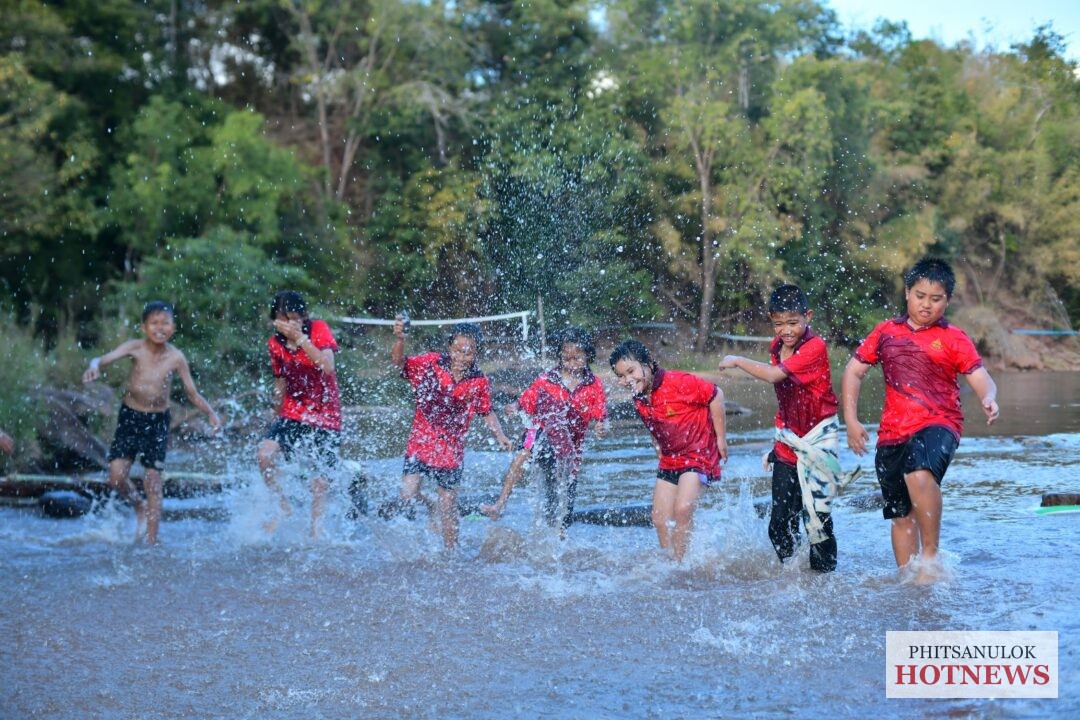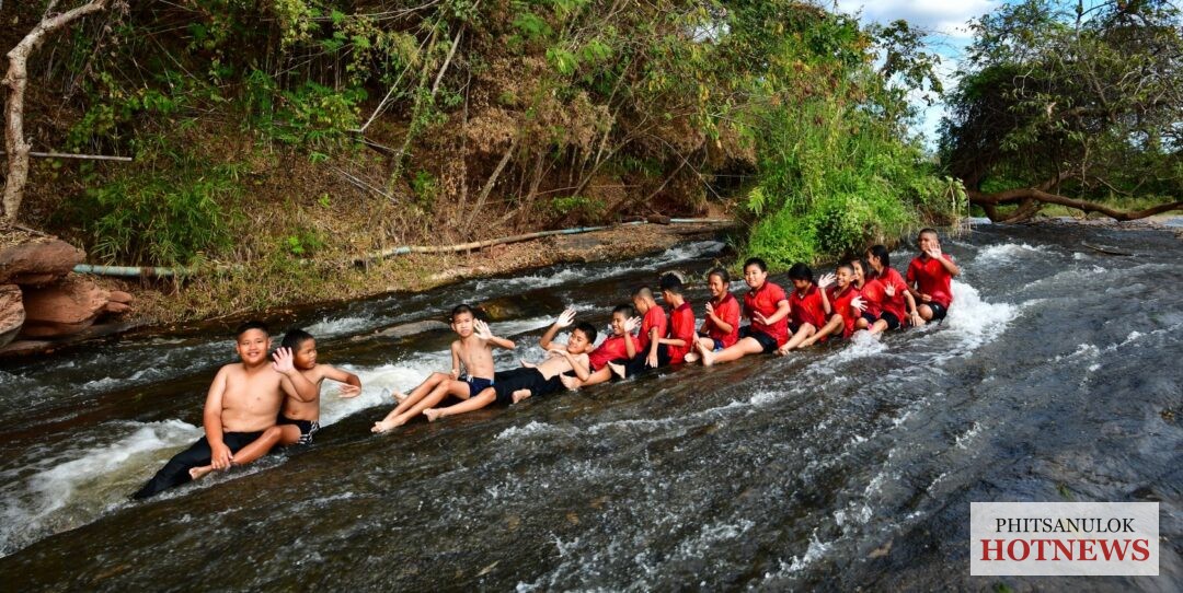 พิษณุโลก ครูและนักเรียนโรงเรียนบ้านแก่งทุ่ง ใช้เวลาหลังเลิกเรียนชวนเด็ก ๆ ออกกำลังกาย เล่นกีฬา และลงเล่นน้ำ พักผ่อนชมธรรมชาติบริเวณน้ำตกแก่งโตน แหล่งท่องเที่ยวธรรมชาติที่มีลานหินทอดยาว สลับด้วยแก่งหินน้อยใหญ่ พร้อมจุดถ่ายภาพเช็กอิน “LOVE” ตัวเท่าบ้าน ท่ามกลางบรรยากาศสวยงาม