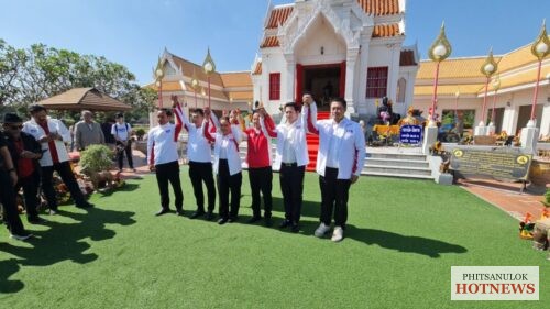 เมื่อเวลา 13.00 น. วันที่ 27 ธันวาคม 2568 ที่ศาลสมเด็จพระนเรศวรมหาราช พระราชวังจันทน์ อ.เมือง จ.พิษณุโลก สมศักดิ์ เทพสุทิน อดีตรองนายกรัฐมนตรี และอดีตรัฐมนตรีหลายกระทรวง แกนนำพรรคเพื่อไทย พาผู้สมัคร ส.ส.พรรคเพื่อไทย จ.พิษณุโลก ทั้ง 5 เขต ประกอบด้วย เขตเลือกตั้งที่ 1 นายจเด็ศ จันทรา เบอร์ 4 เขตเลือกตั้งที่ 2 นายนพพล เหลืองทองนารา เบอร์ 1 เขตเลือกตั้งที่ 3 นายเจนวิทย์ จันทรา เบอร์ 4 เขตเลือกตั้งที่ 4 นางสาวพิมพิชชา ชัยศุภกิจเจริญ เบอร์ 1 เขตเลือกตั้งที่ 5 นายเอกพงษ์ กุลเจริญ เบอร์ 3 กราบถวายสักการะสมเด็จพระนเรศวรมหาราช เพื่อขอพรจากนักรบผู้กล้า สิ่งศักดิ์สิทธิ์ ของจังหวัดพิษณุโลก เพื่อปลุกพลังนักรบ เพื่อสู้ศึกเลือกตั้งในครั้งนี้ โดยเชื่อมั่นว่าสนามเลือกตั้ง จ.พิษณุโลก เดิมพรรคเพื่อไทย 5 เขตพิษณุโลก มี ส.ส. 3 คน 3 เขต ในครั้งนี้ตั้งเป้าว่าน่าจะได้เก้าอี้ครบทั้ง 5 คน 5 เขต อย่างแน่นอน