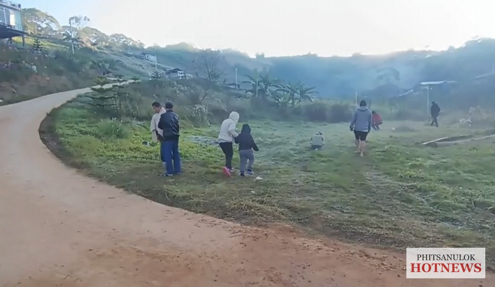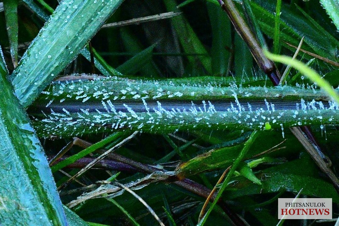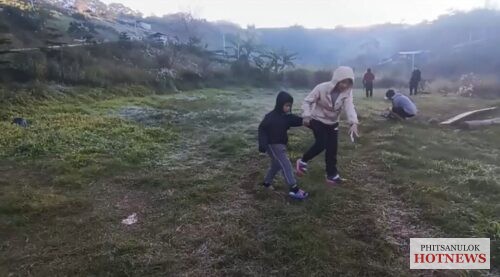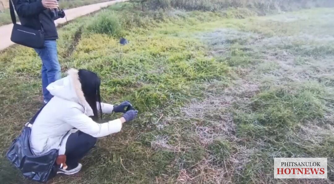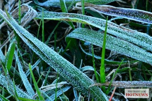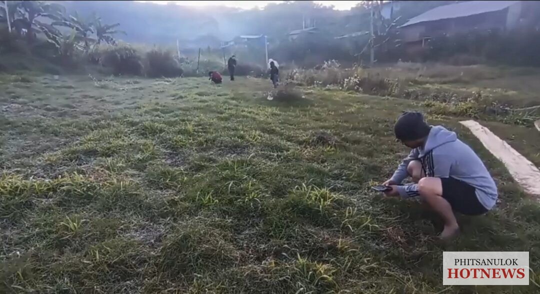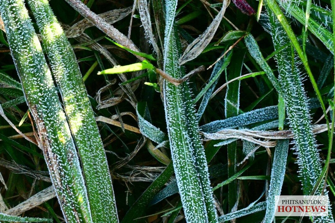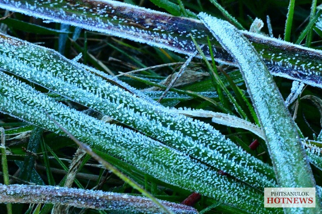 วันนี้ ( 30 ธ.ค.) ผู้สื่อข่าวรายงานว่า สภาพอากาศที่จังหวัดพิษณุโลก ได้ลดลงอย่างต่อเนื่อง โดยเฉพาะยอดดอย ที่บ้านใหม่ร่องกล้า อุทยานแห่งชาติภูหินร่องกล้า อุณหภูมิทั่วไปในช่วงเช้าที่ผ่านมาลดลงเหลือ เพียง 8 องศา อุณหภูมิยอดหญ้า อยู่ที่ 0 องศา ทำให้เกิดแม่คะนิ้ง หรือ เหมยขาบ เป็นบางจุด โดยเฉพาะบริเวณด้านหน้ารีสอร์ทต้อเซี๊ย เกิดเกล็ดน้ำค้างแข็งบนยอดหญ้าบริเวณกว้าง ทำให้นักท่องเที่ยวที่มาสัมผัสอากาศหนาวเย็น ต่างตื่นตาตื่นใจและถ่ายภาพเก็บไว้กันจำนวนมาก