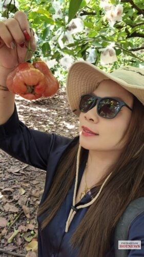 บรรยากาศภายในสวนร่มรื่น ต้นชมพู่เรียงรายเต็มพื้นที่ ทุกช่อถูกห่อดูแลอย่างดี นักท่องเที่ยวสามารถเลือกผลโต สีเข้ม ฟูสวย เก็บใส่ตะกร้าได้อย่างเพลิดเพลิน หลายครอบครัวพาเด็ก ๆ มาร่วมกิจกรรม เปิดประสบการณ์เรียนรู้วิถีเกษตรใกล้ชิดธรรมชาติ สร้างรอยยิ้มและความประทับใจ