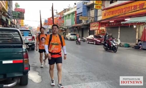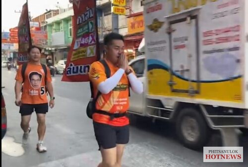 พิษณุโลก หมออ๋อง เดินเท้าหาช่วยผู้สมัครหาเสียง 2 เขตเลือกตั้ง จากสถานีรถไฟพิษณุโลกถึงตลาดพรหมพิราม ระยะทาง 26 กิโลเมตร