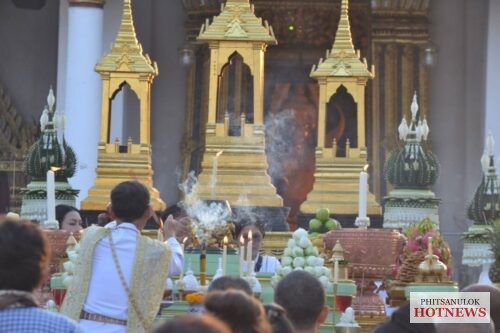 โดยมีเจ้าภาพหลักคือคุณเอมอร ศรีวัฒนประภา คุณอัยวัฒน์ ศรีวัฒนประภา สโมสรเลสเตอร์ซิตี้ และกลุ่มบริษัทคิงเพาเวอร์ จัดเครื่องบวงสรวง มีพระเทพรัตนมุนี เจ้าอาวาสวัดพระศรีรัตนมหาธาตุ วรมหาวิหาร ประธานฝ่ายสงฆ์ จุดธูปเทียน และ คุณนิภาวรรณ กาญจนพิทักษ์ วัฒนธรรมจังหวัดพิษณุโลก ปักธูปเทียนสังเวย และมีชาวพิษณุโลกมาร่วมพิธีบวงสรวงเพื่อถวายเป็นพุทธบูชาจำนวนมาก
