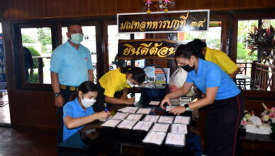 มอบข้าวกล่องเดลิเวอรรี่ส่งใจถึงกันให้กับผู้ด้อยโอกาสคนขับสามล้อขี่รถมอเตอร์รับจ้างช่วงโควิด