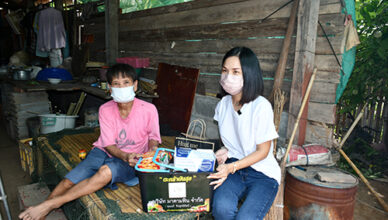 มาดามฟินร่วมกองพลพัฒนาที่ 3 นำสิ่งของสนับสนุนเจ้าหน้าที่ด่านหน้าศูนย์พักคอย-มอบวีลแชร์ผู้ป่วยติดเตียงตะกร้าปันสุขถึงบ้าน